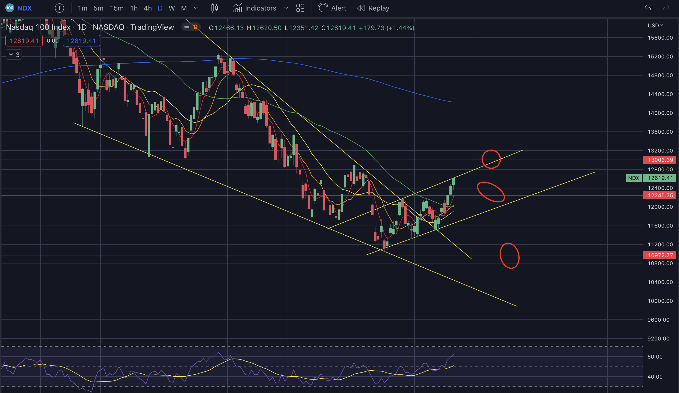 - 나스닥차트를 보면 채널의 상단에 맞았다.