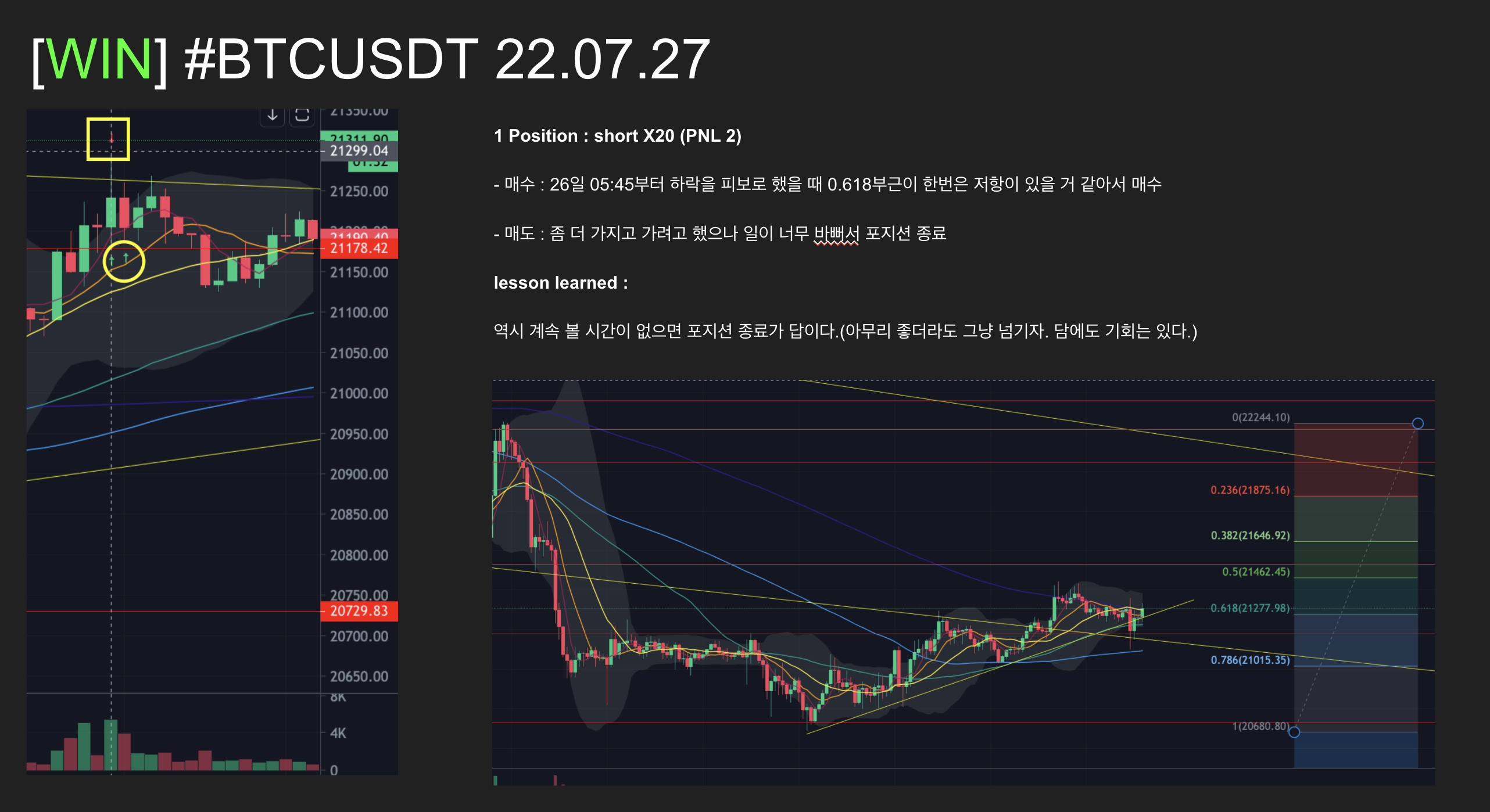 - 타이밍은 좋게 잡았지만 바뻐서 포지션 종료! 잘했다.