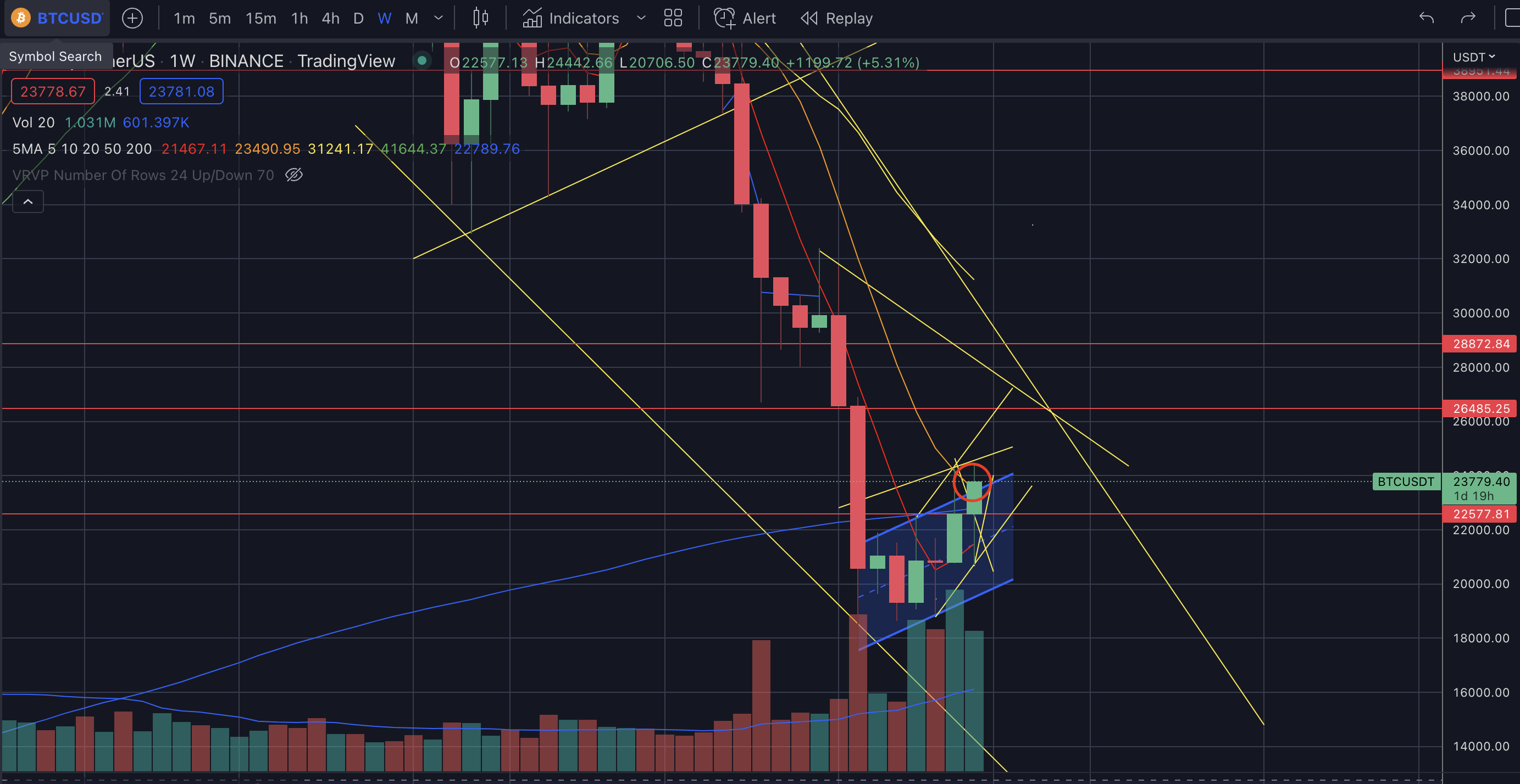 23.5위에서 마감을 해주면 2주동안 상승했던 것을 받고30k로 가는 발판을 마련할 수 있다. - 하지만 주봉이