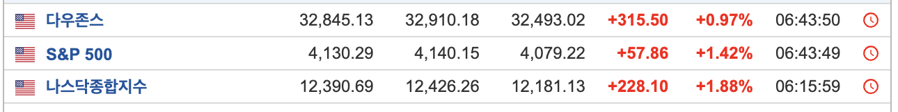 - 3대 지수 모두 상승하면서 3일 연속으로 상승하였다.