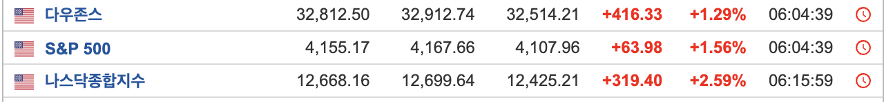 - 3대지수 상승을 보여주고 있고 특히 나스닥형님은 엄청난 상승을 보여주고 있다.