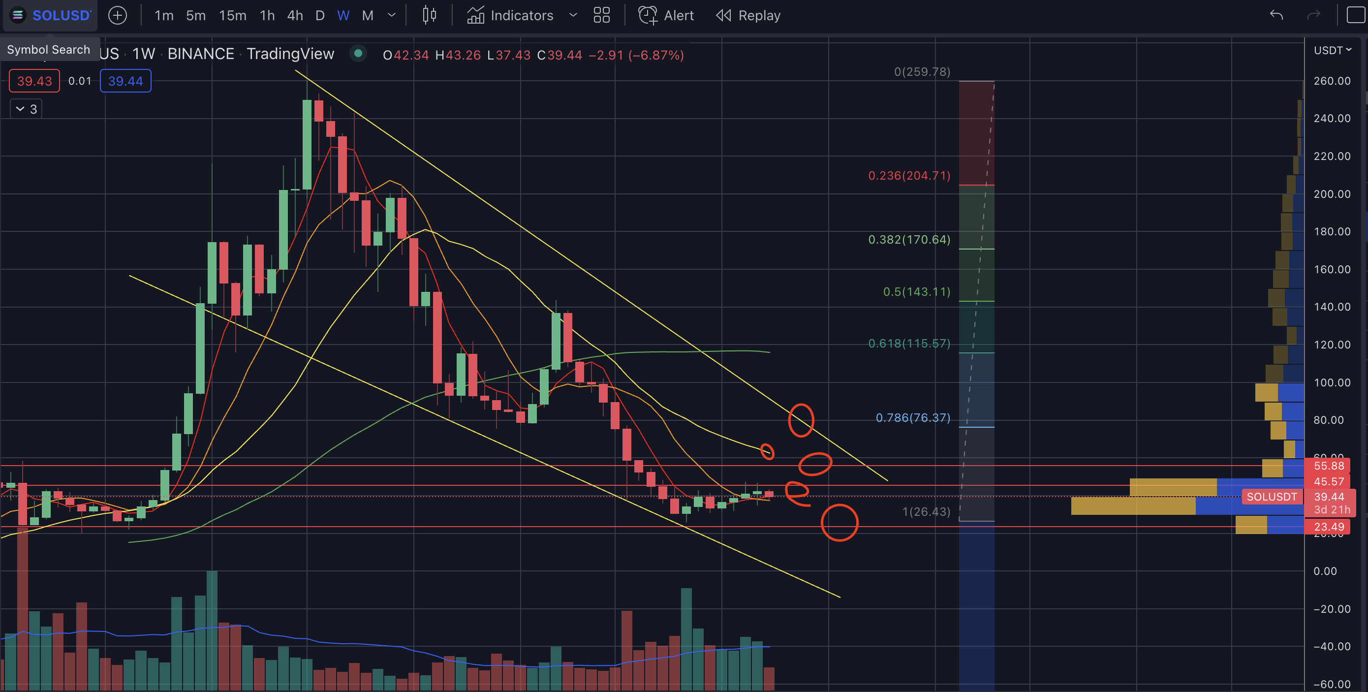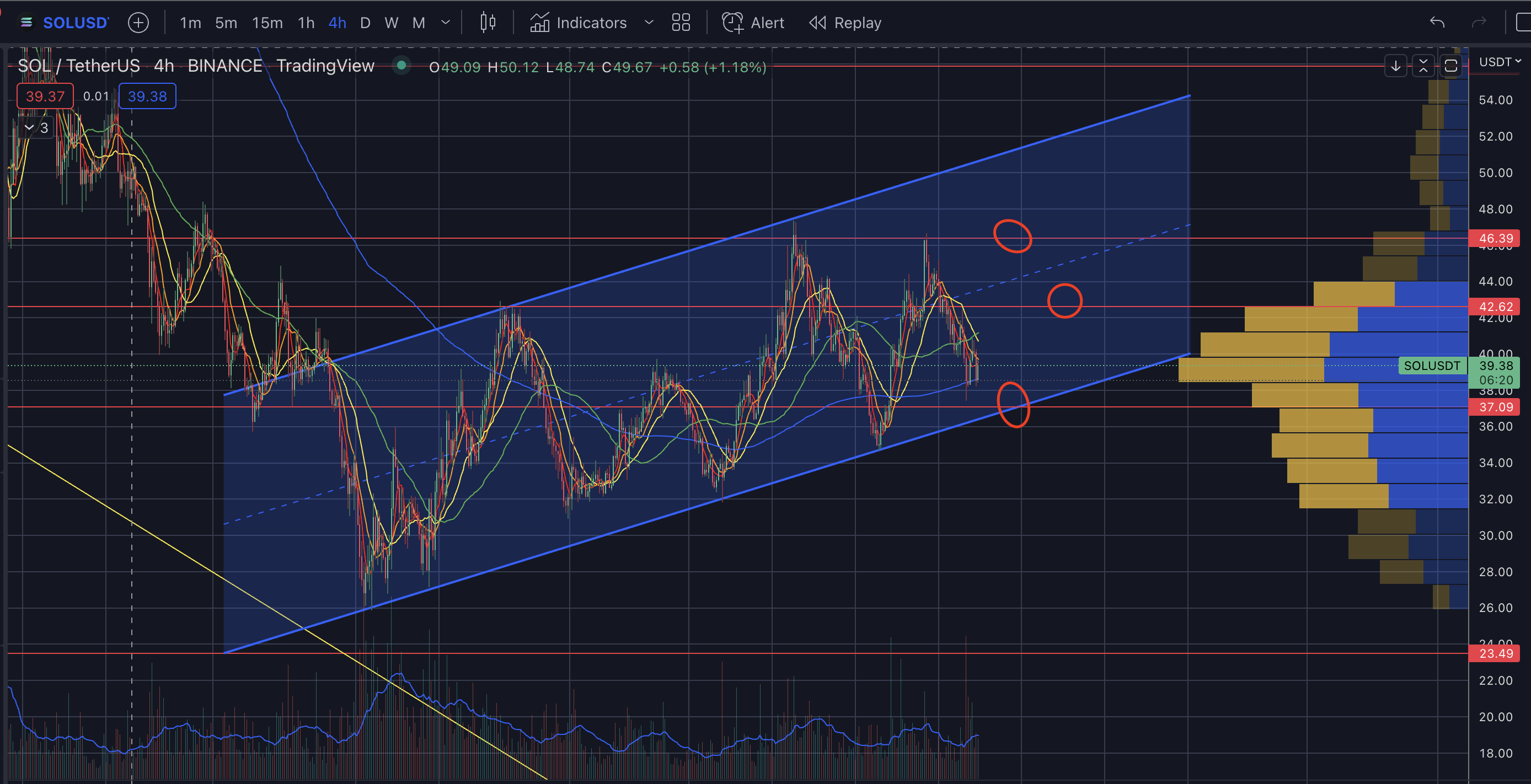 36~37라인은 지켜줘야 한다. - 이번 단기 상승채널마저 깨지면 솔라나는 위험하다.