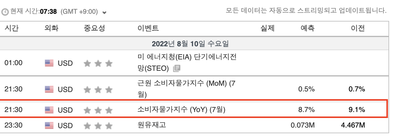 - 오늘은 21:30에 있는 CPI 발표를 주목하자. 낮게 나오면 굿, 높게 나오면 하락할 가능성이 많다.