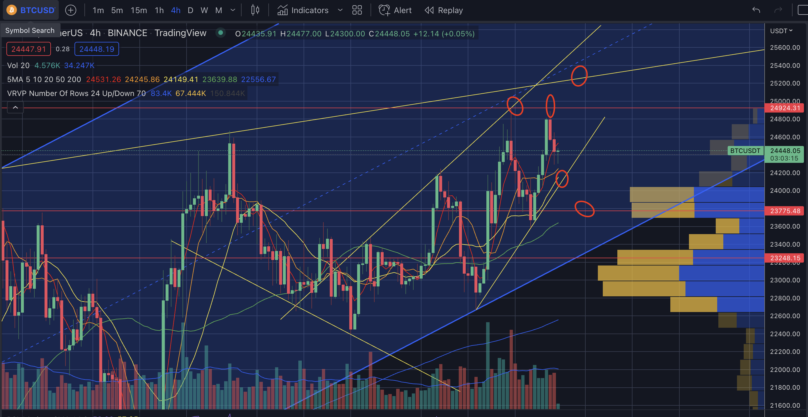 25부근을 다시 한번 터치하고 다시 떨구고 10일선을 터치하고 살짝 올라와주고 있다.- 4시간봉도 상승추세를 보이고 있으며 20일선인