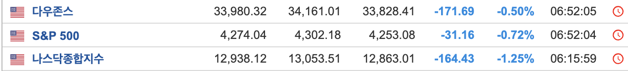 - 다시 3대 지수가 하락했다. 특히 나스닥이 더 떨어졌다. 역시 떨어질땐 비트가 커플하는 구나 ㅠㅠ