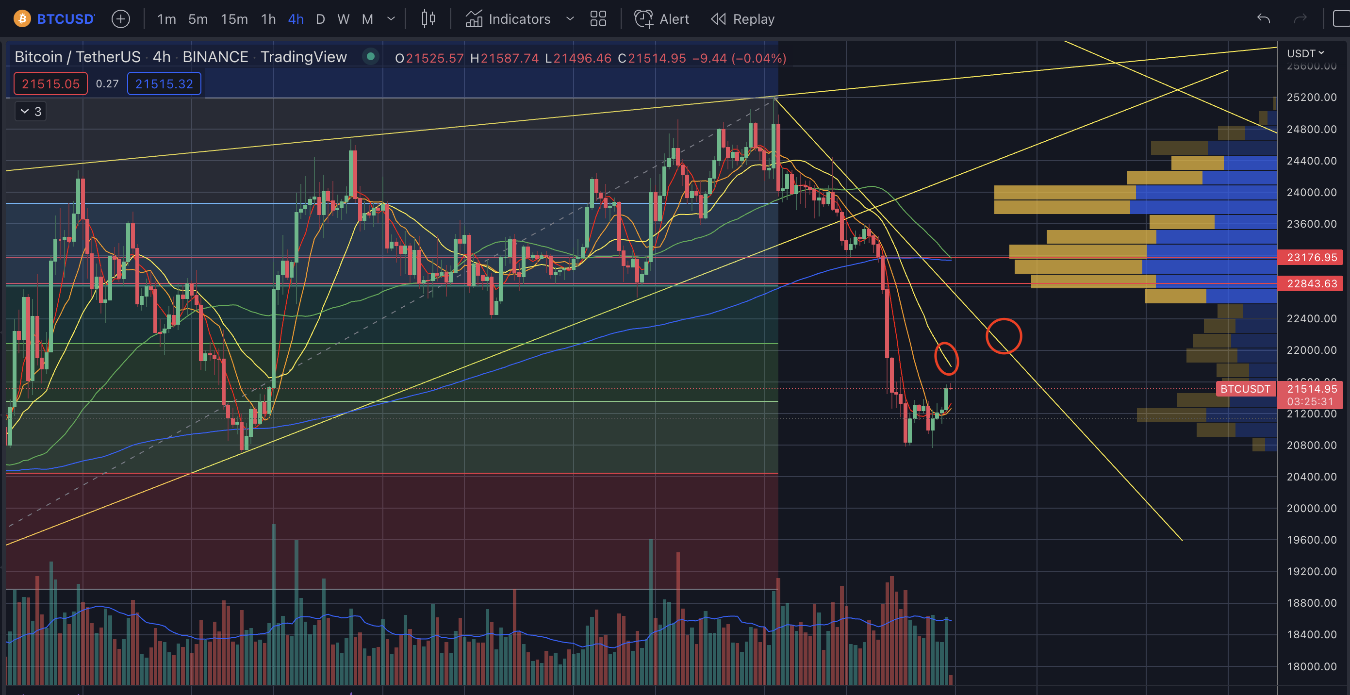 21.7~8k->22k->22.4k - 하락시 지지 구간 :