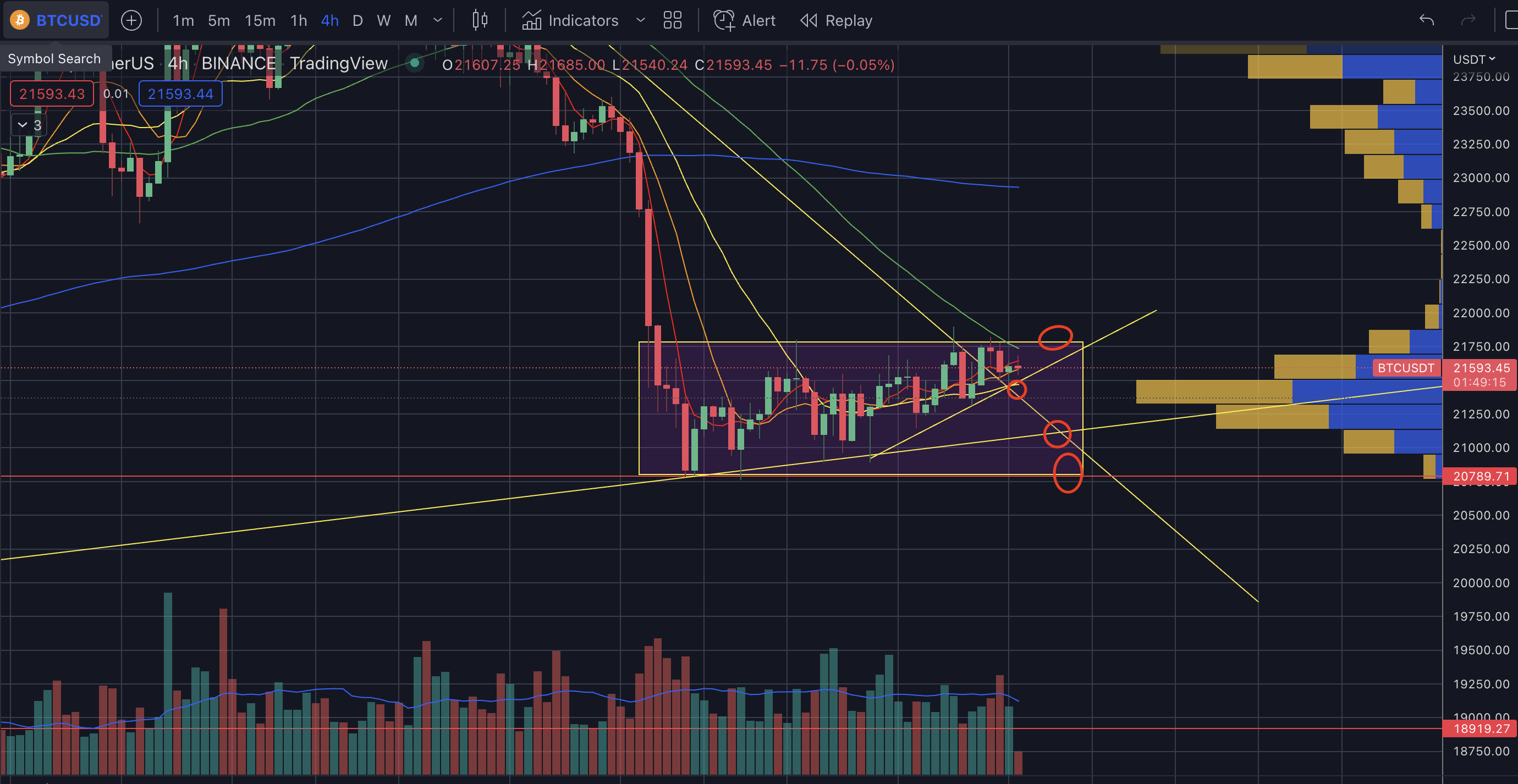 - 박스권은 이때 위든 아래든 이탈할 가능성이 많으며 특히 아래인 20.8~21k부근이 강하게 하방이탈하면 대응해야 한다.