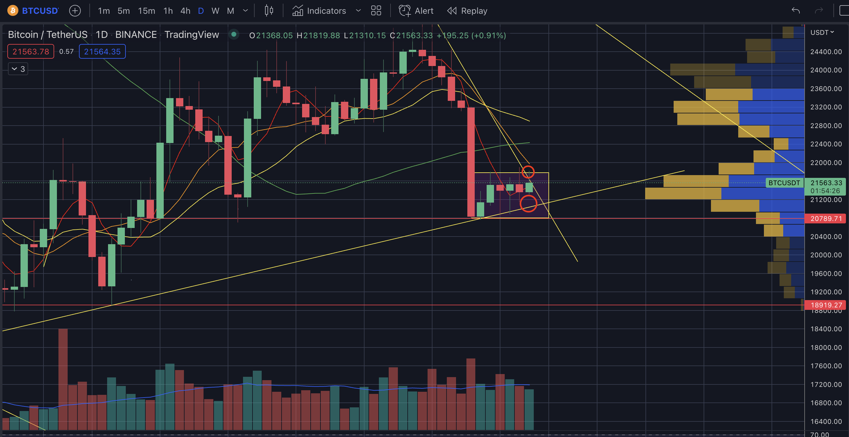 - 20.8k 부근의 추세선을 조심하자 여기는 6월달부터 이어져온 추세선이기 때문에 깬다면 20k로 바로 직행이다. (깨지면 현물은 매도, 선물은 short!)