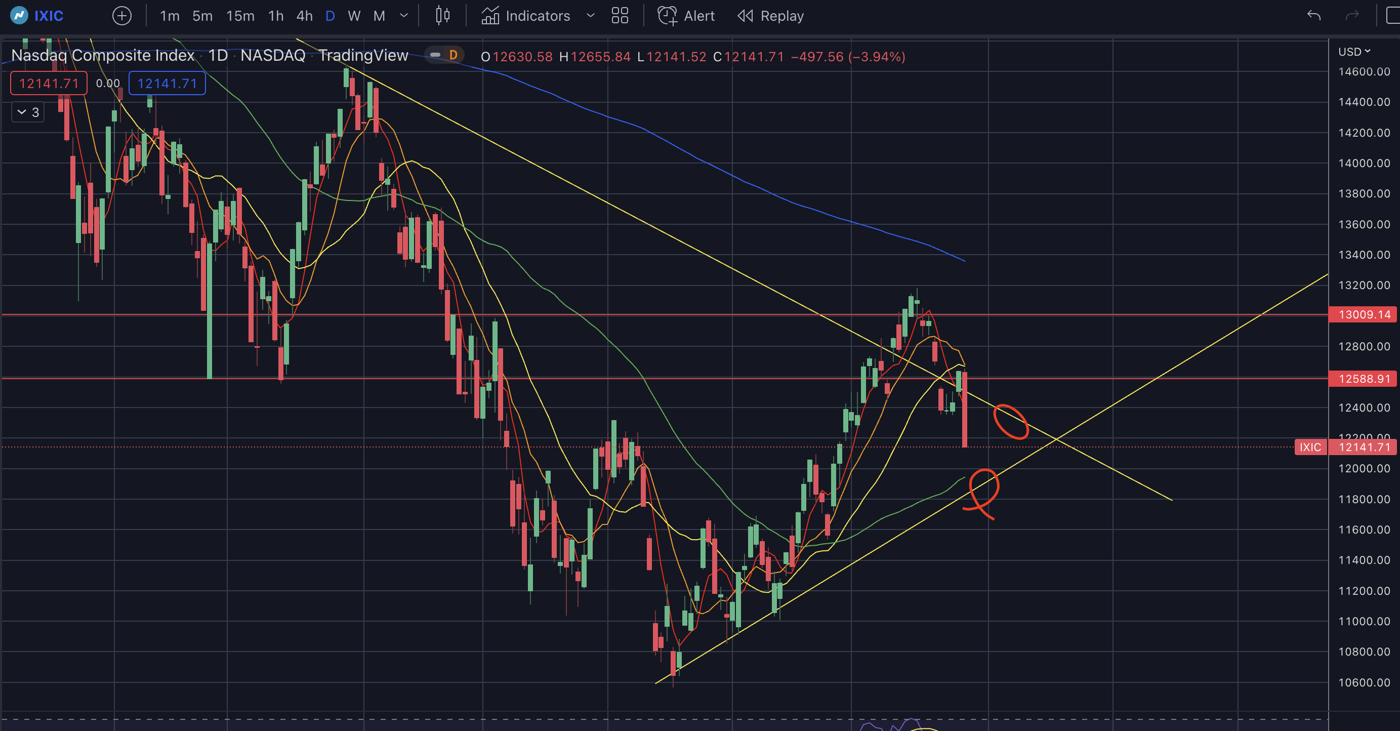 - 나스닥도 상방추세선을 강하게 뚫어버렸고 밑의 추세선을 지지해주는 것이 중요하다. ㅠㅠ
