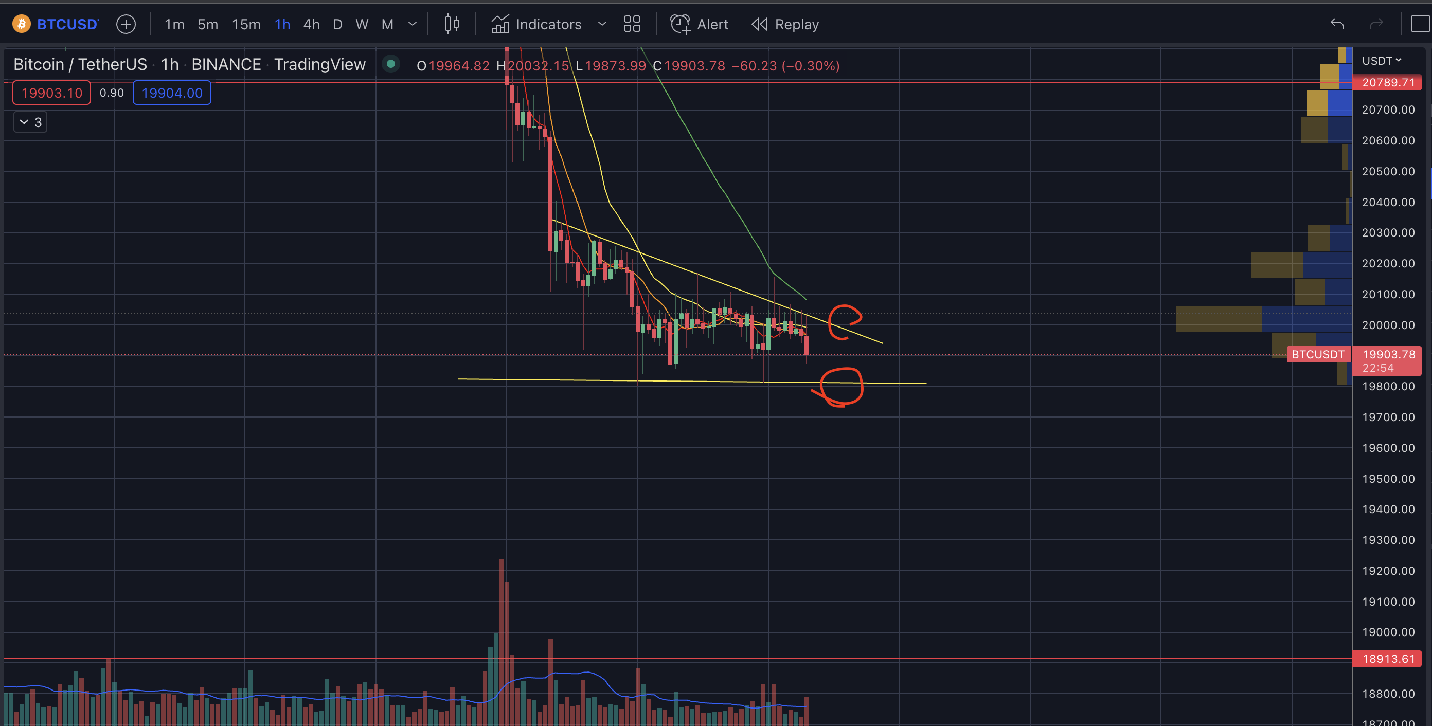 - 단기적 디센딩트라이앵글형태여서 19.8을 강하게 뚫는 모습이 보이면 단기 숏잡기 좋은 자리일 수 있다.