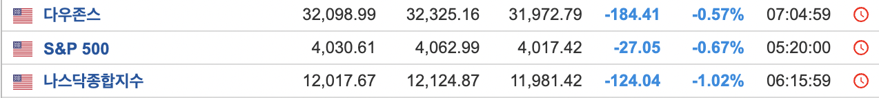 - 3대지수 모두 하락하면서 비트코인과는 다른 방향을 보였다. (디커플링)