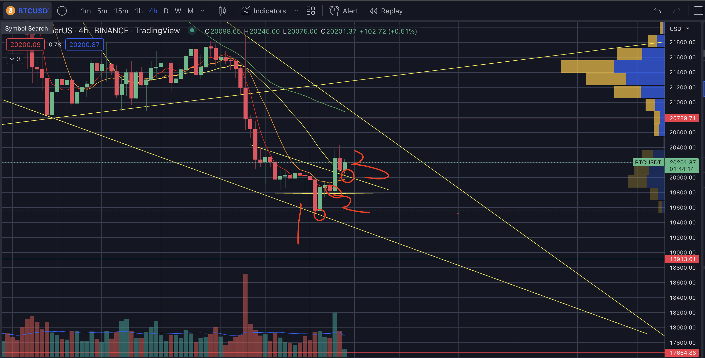 - 일봉의 20일선 20.8k~21k를 강하게 뚫어주고 지지하면 그 때부터 현물매매 및 LONG잡아도 늦지 않는다. (조급해 하지말자)