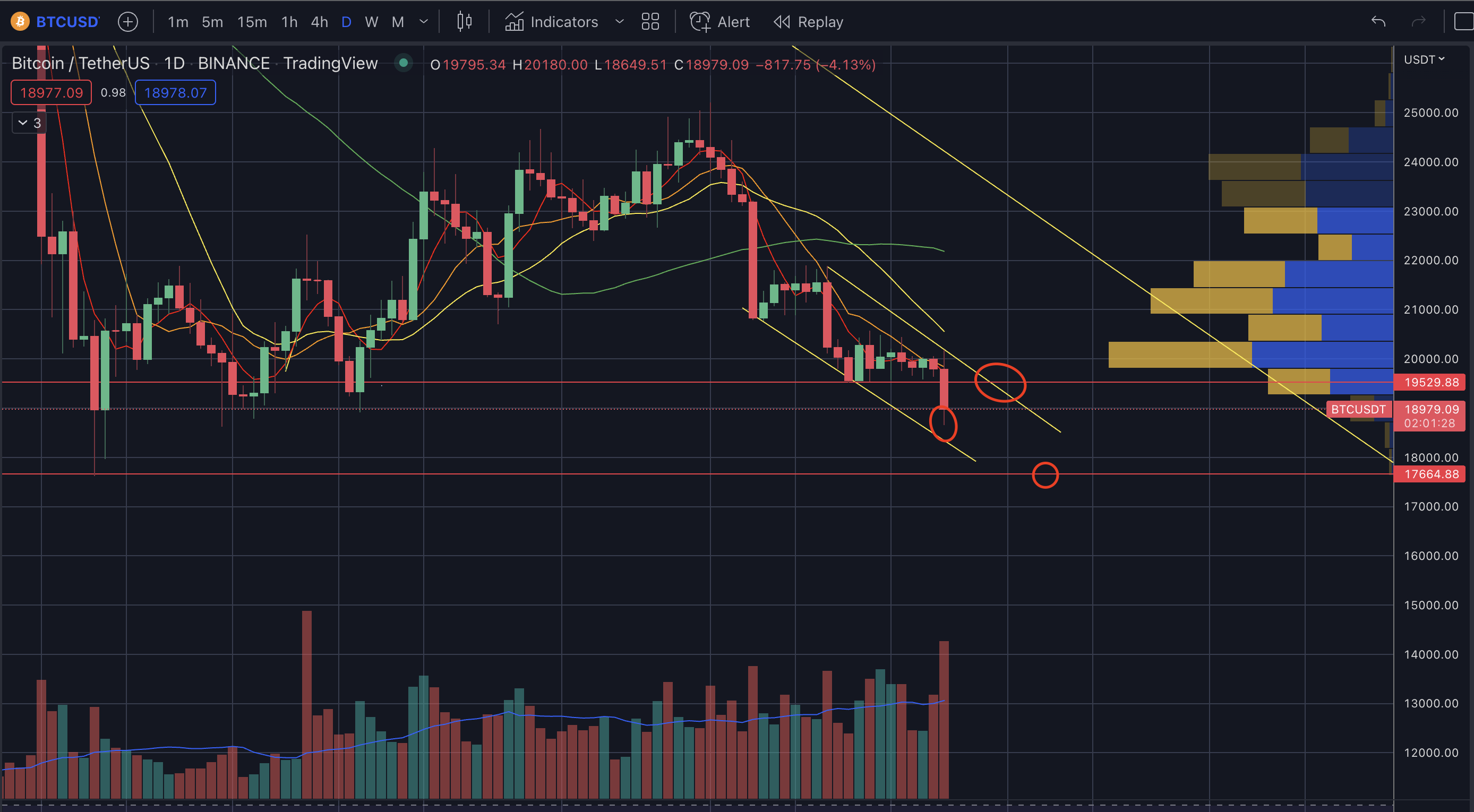 - 하락시 지지 구간 : 18.6k -> 18~17.6k -> 14k