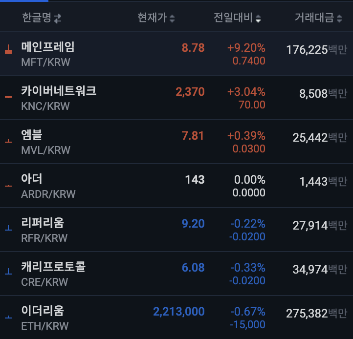 업비트 상위 종목