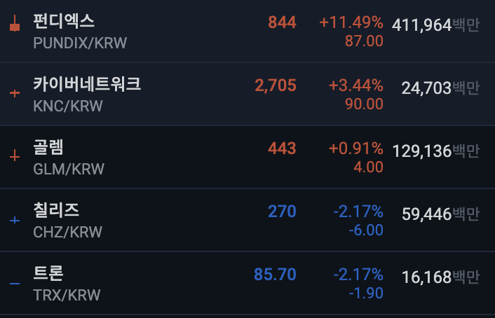 업비트 상위 종목