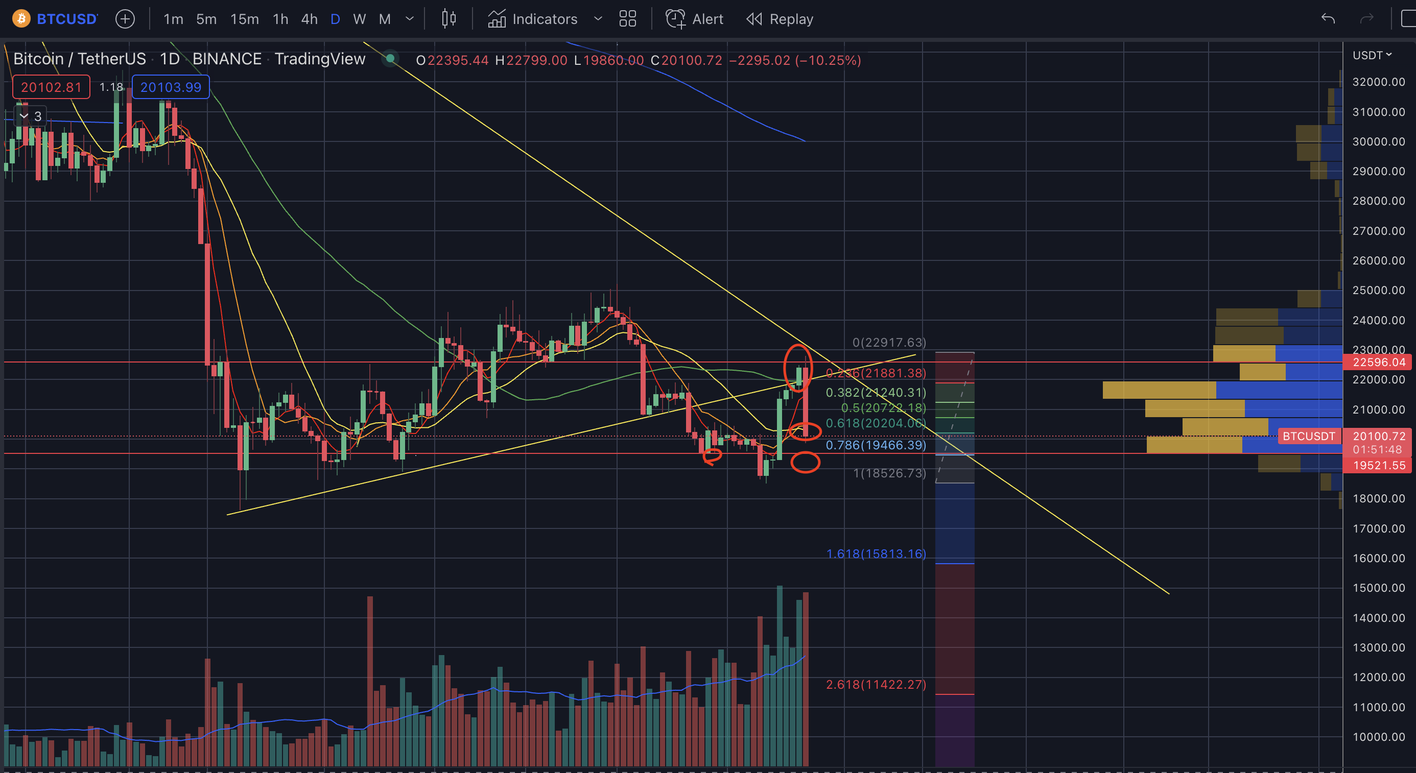 - 모든 지지라인을 깨고 19.8k까지 터치해 버렸다.