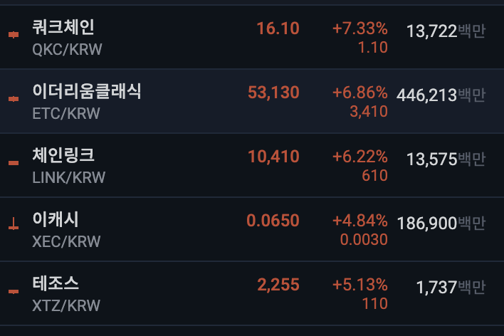 업비트 상위 종목