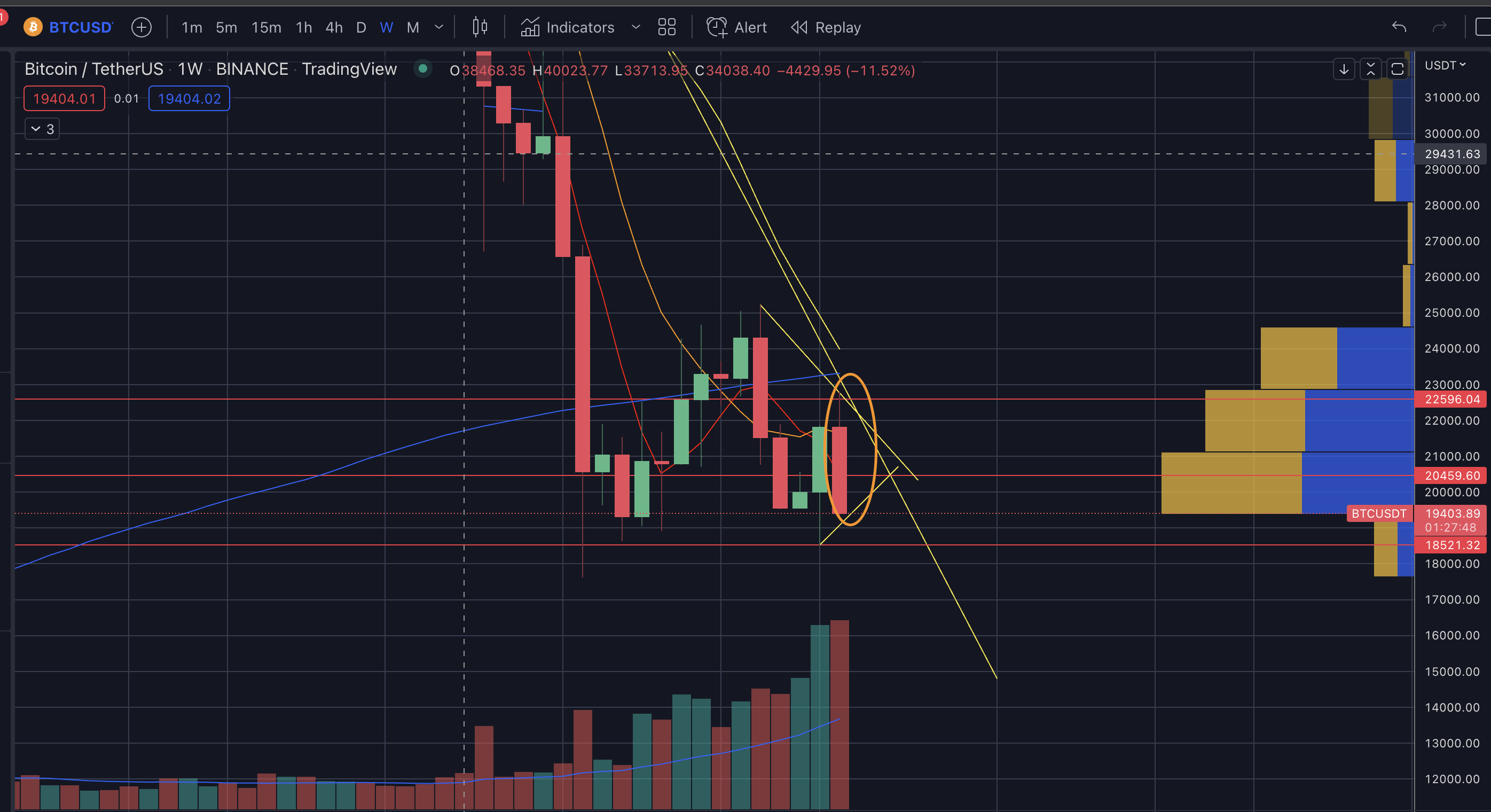 - 현재는 전저점 18.5k가 깨지는 지 제일 중요하게 봐야 하고 9시 봉이 19.5k를 회복하는 지 체크해야 한다.