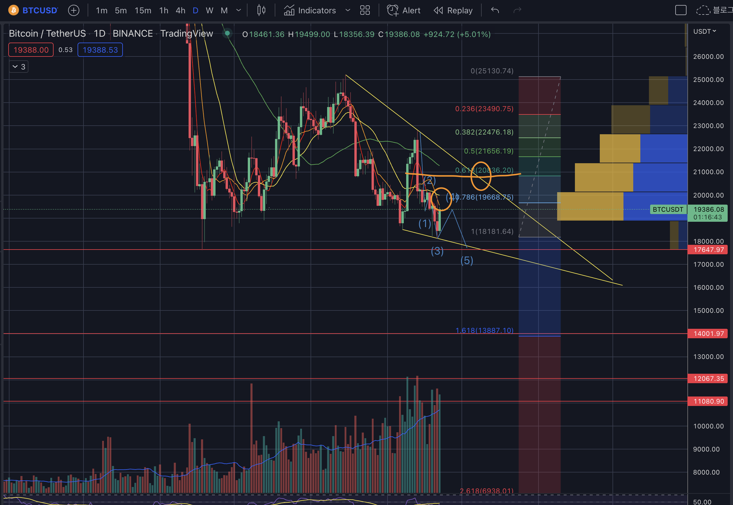 - 상승 시 저항 구간 : 19.5k -> 20.2k -> 21.2k