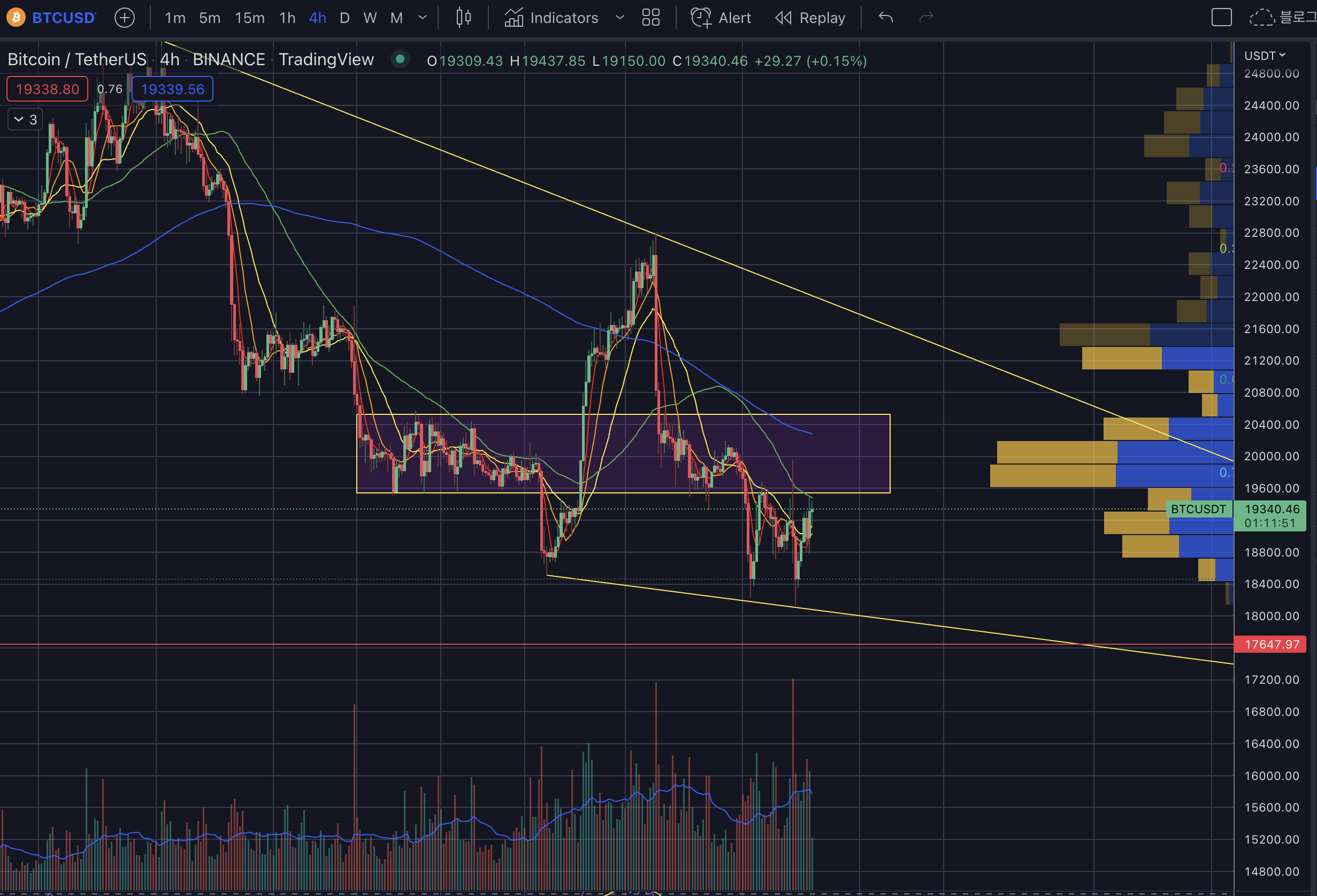 - 하락 시 지지 구간 : 18.7k -> 18k -> 17.6k -> 16.3k