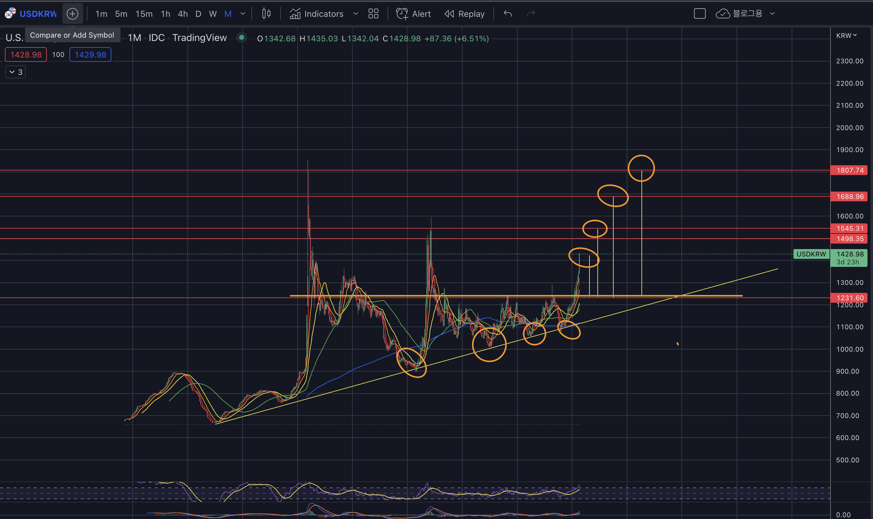 USDKRW 차트 월봉
