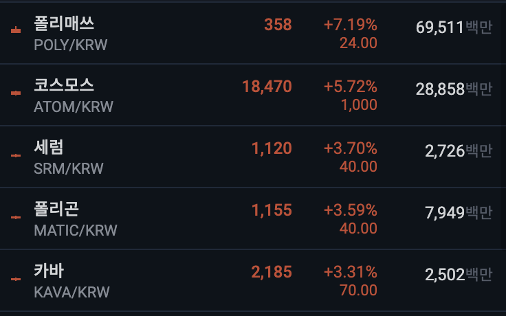 - 폴리 메쓰, 코스모스, 세럼, 폴리곤, 카바가 좋은 흐름을 보이고 있다.