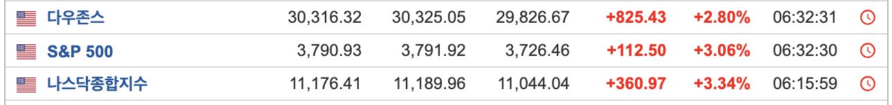 - 3대지수 모두 높은 상승을 이루면서 좋은 모습을 보이고 있다. 과연 기술적 반등일까?