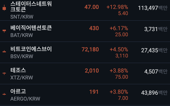 업비트 전일 대비 상위 종목