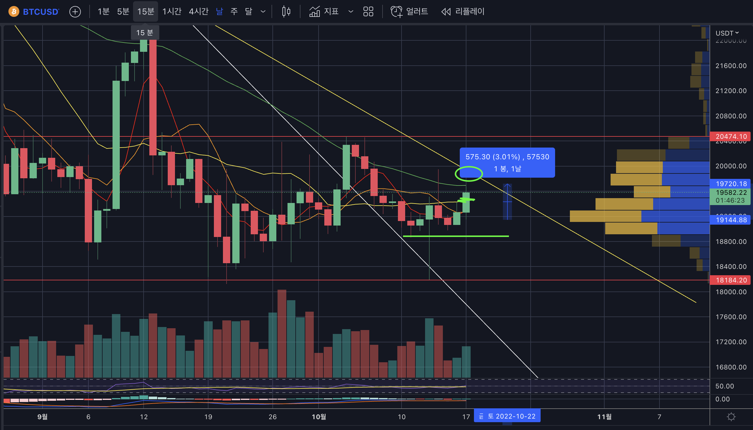 | [시황분석][비트코인] 22.10.19 - 어제 상승분 반납 3% 하락 M자패턴 진행중? , 앵커 흐름좋다. (20) | 2022.10.19 |
