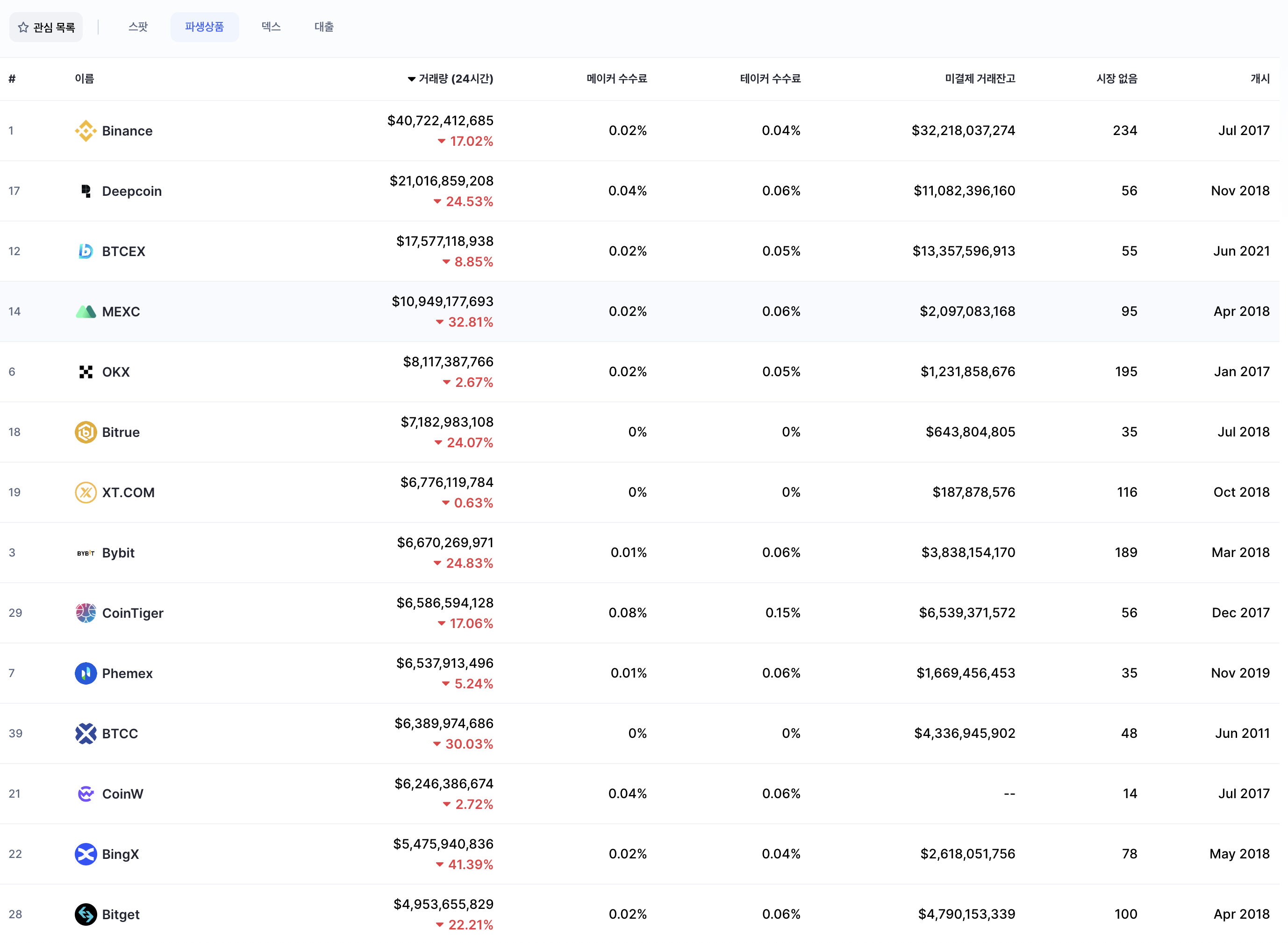 코인 선물 거래소 종류