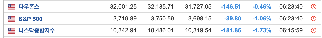 - FOMC여파였는 지 3대 지수 모두 하락 마감했고, 오늘도 나스닥이 제일 많이 빠졌습니다.