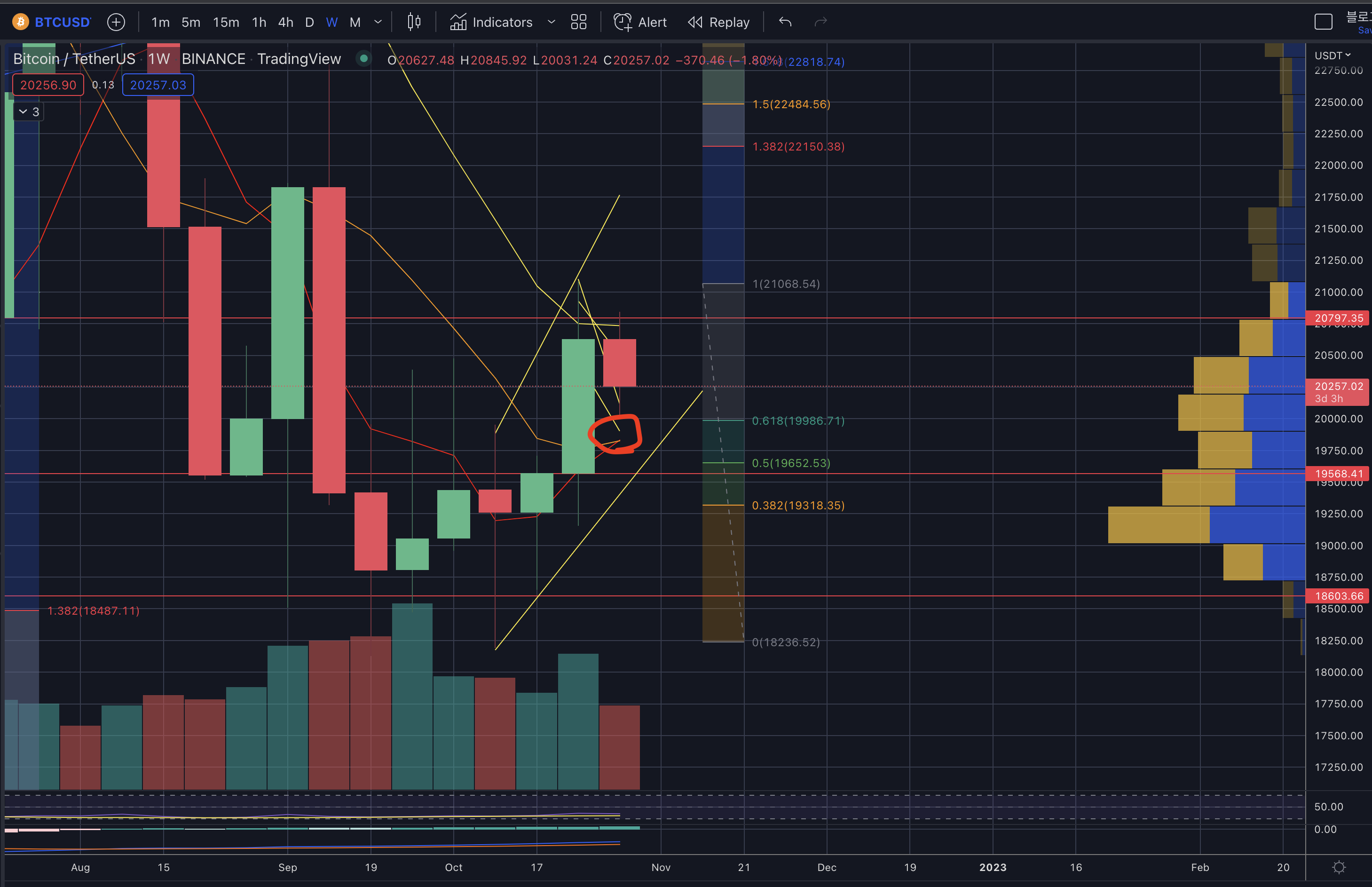 - 상승 시 저항 구간 : 20.5k -> 20.8k -> 21k -> 21.3~6k -> 22k