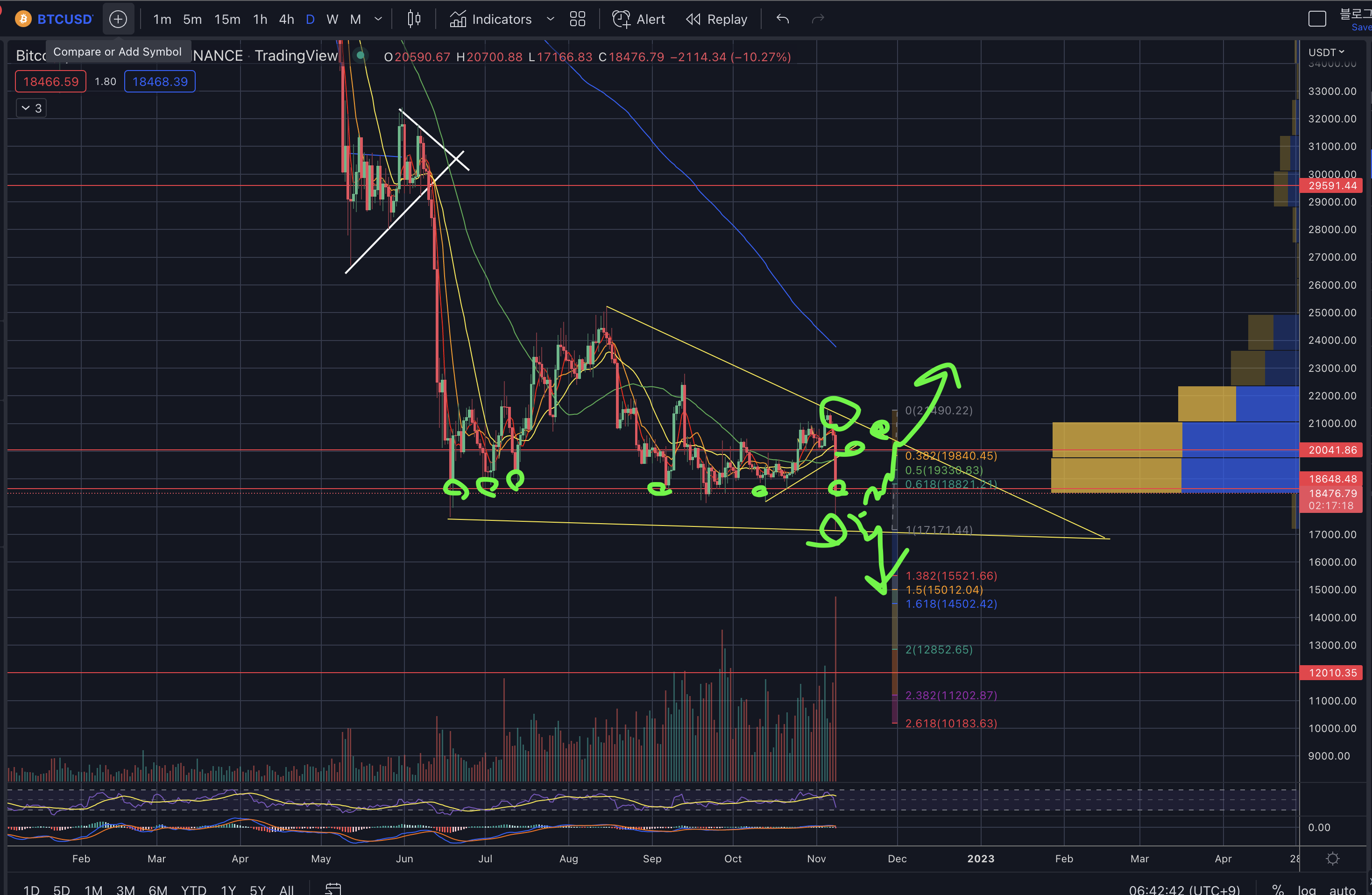 - 하락 시 지지 구간 : 17k -> 15.5k -> 14k -> 12k