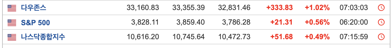 미국 마감 시황