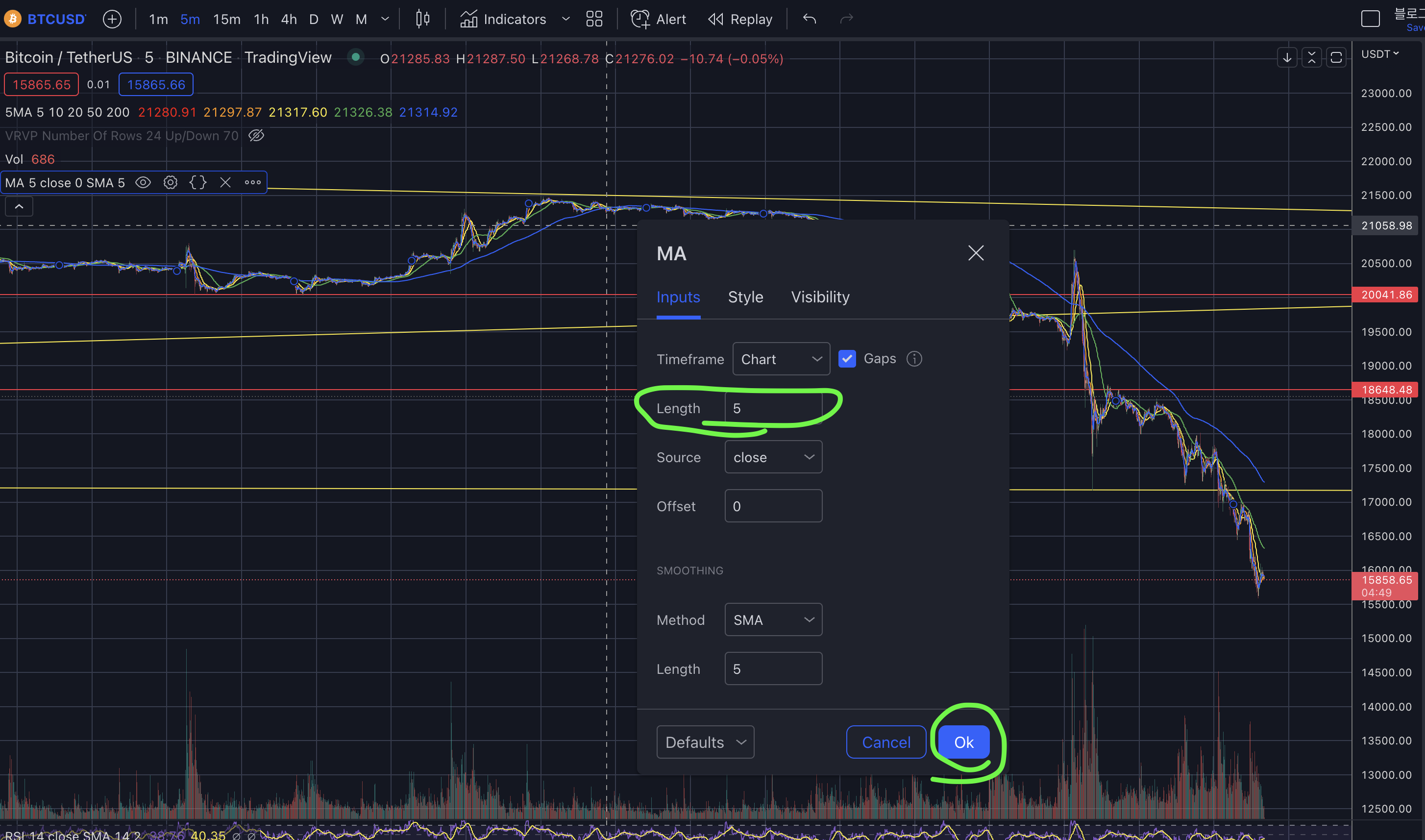 3. MA란에 Length란에 5를 넣어주면 5일선을 추가할 수 있습니다.