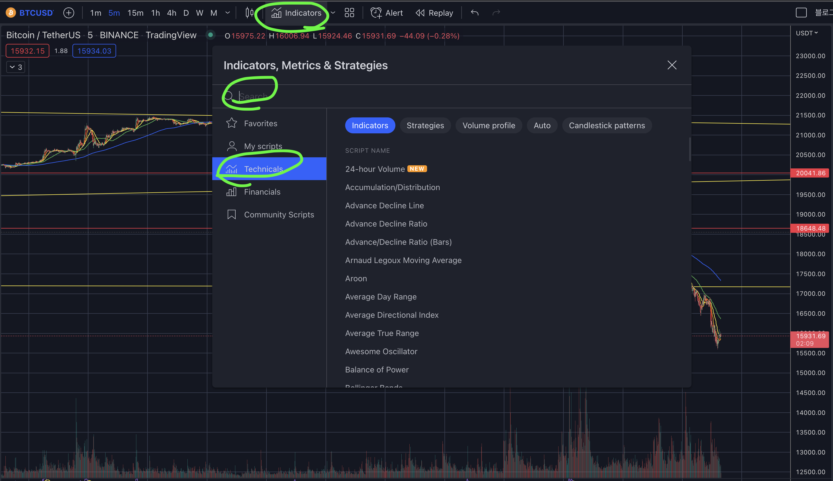 (각 거래소에서는 테크니컬탭을 보통 지원합니다.)