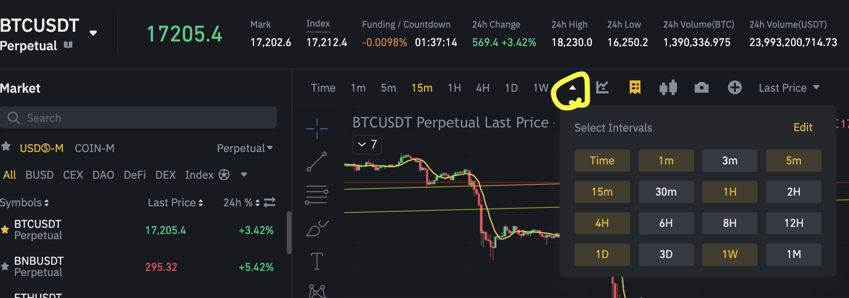 1. 바이낸스 기준으로 아래 그림에서 다양하게 선택하고 설정가능합니다.