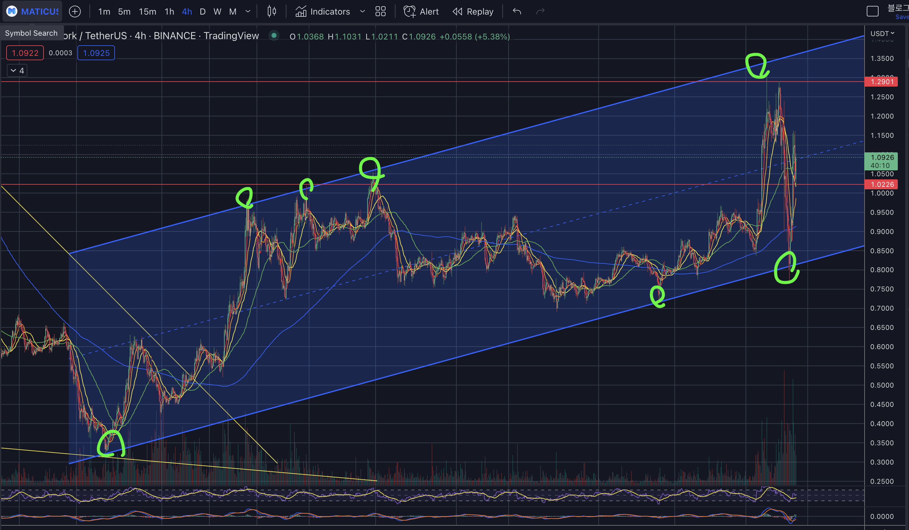 보시는 차트는 폴리곤(MATIC) 현물 차트 4시간봉입니다.