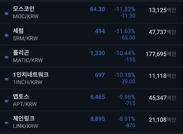- 모스코인, 세럼, 폴리곤이 좋지 않네요~