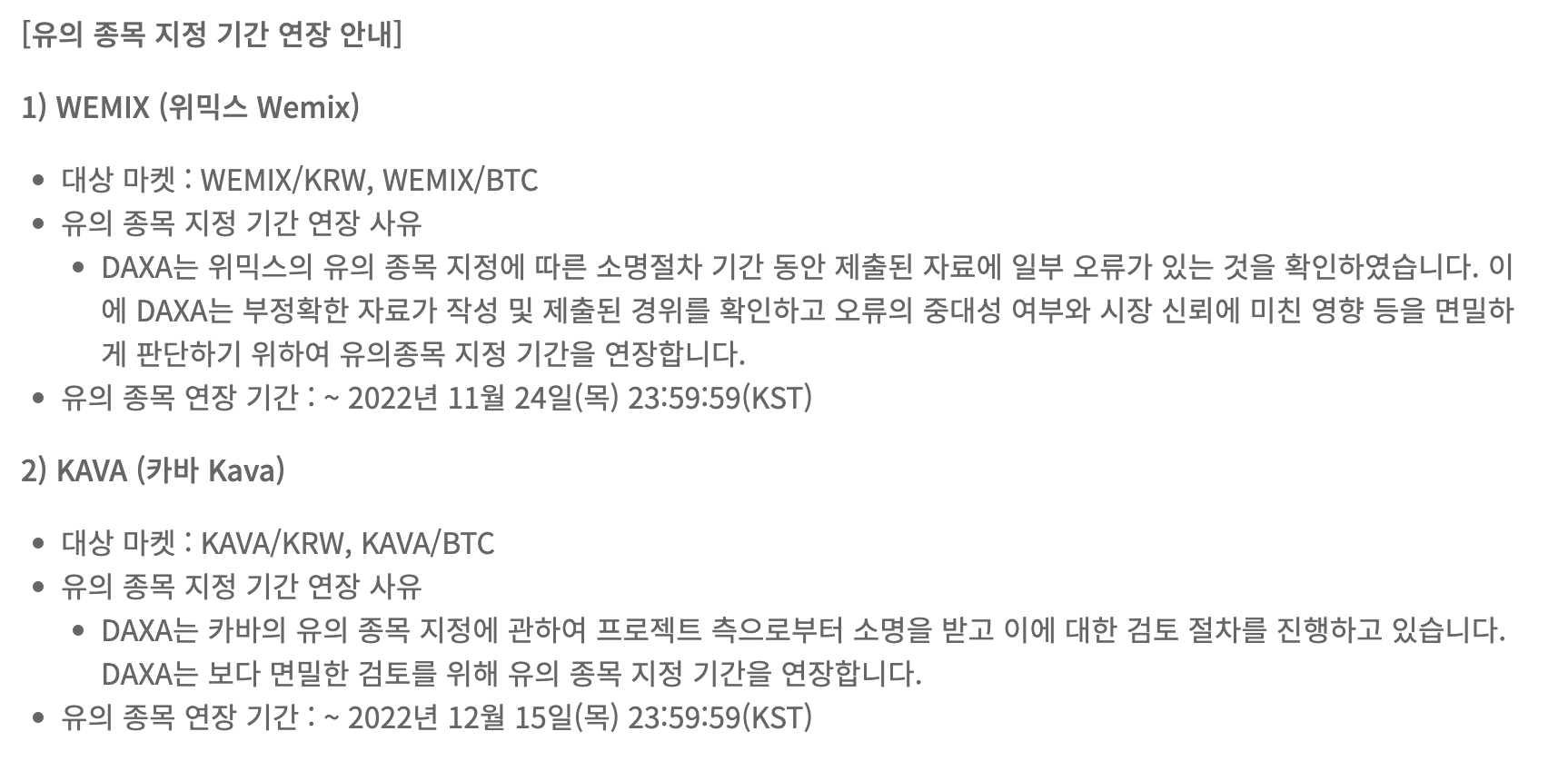 - 특히 위믹스,카바는 유의종목으로 지정되어 매우 위험합니다.