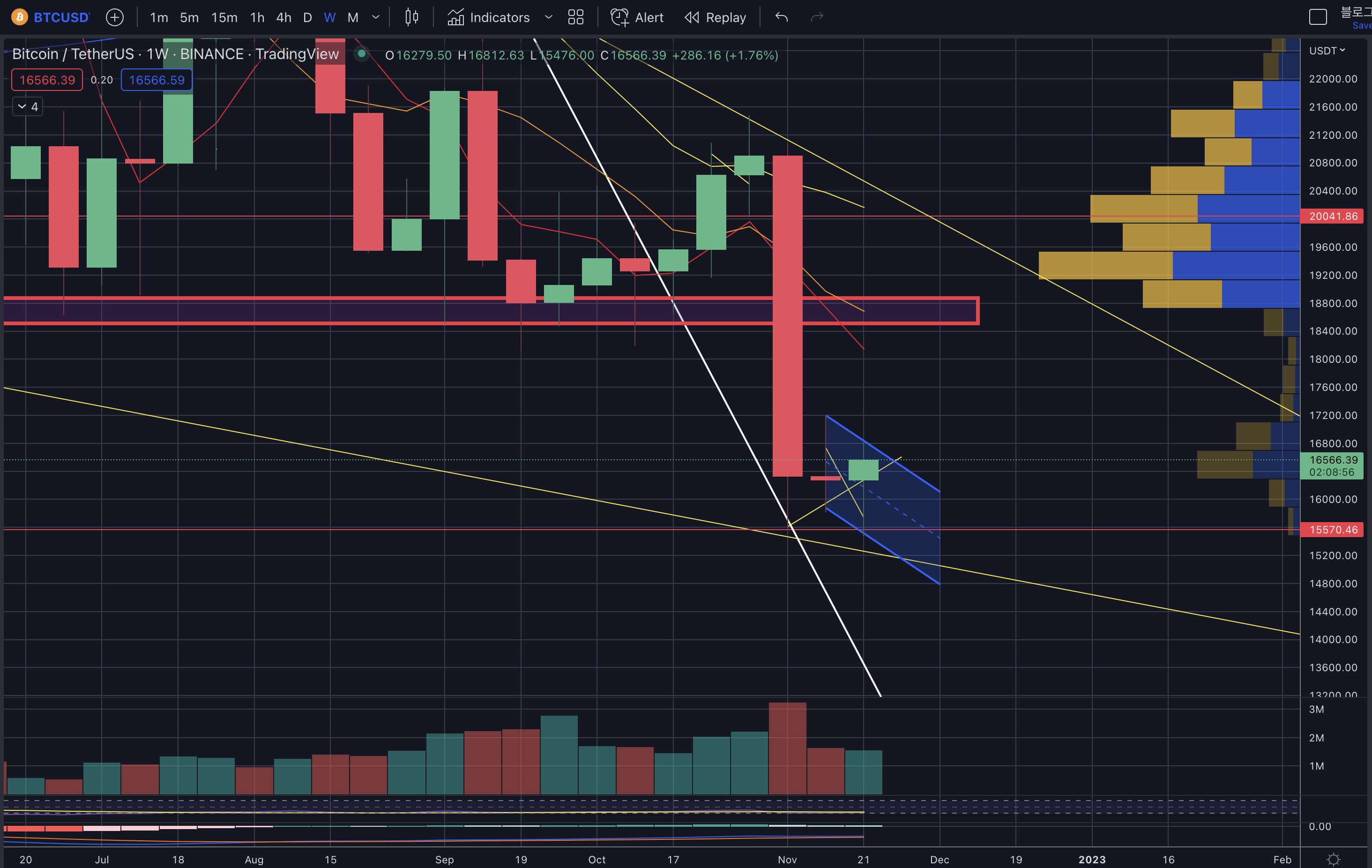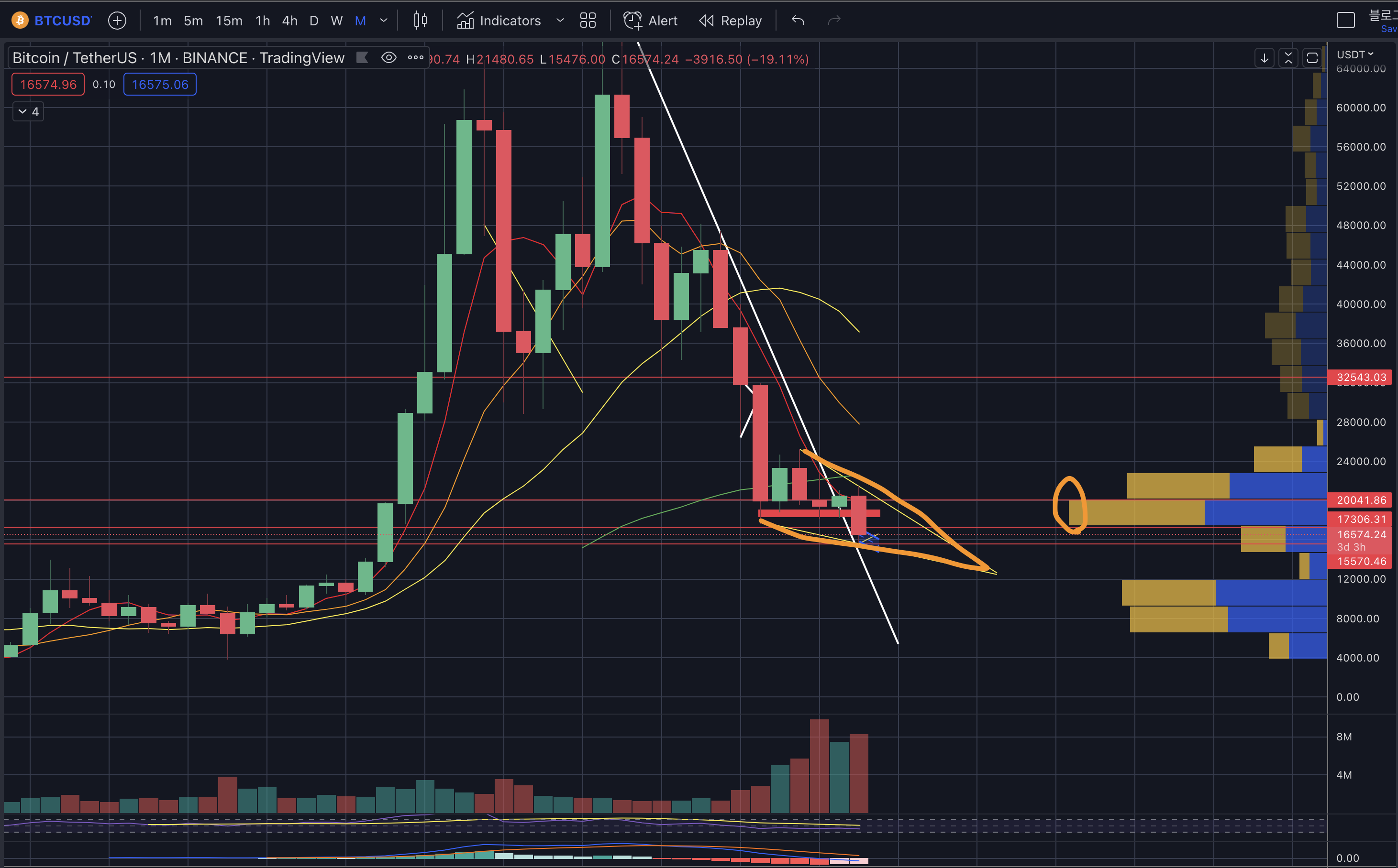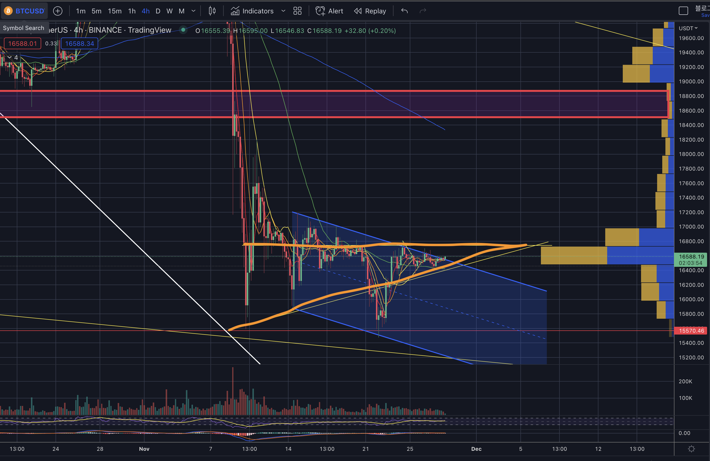 - 하락 시 지지 구간 : 16.2k -> 16k -> 15.8k -> 15.5k
