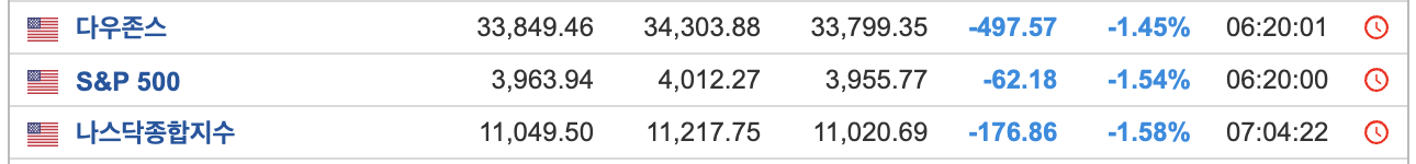 - 3대지수 모두 하락 마감하면서 좋지 않았습니다.