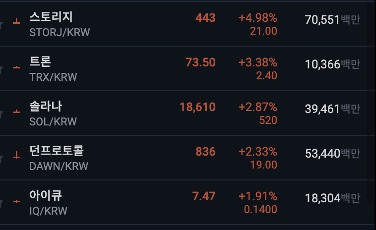 업비트 전일 대비 상위 종목
