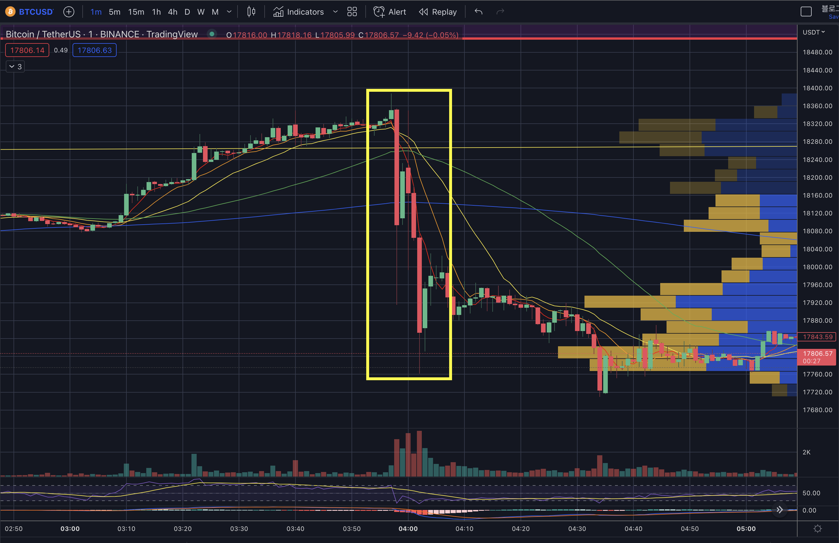 - 하락 시 지지 구간 : 17.2~4k -> 16.8k -> 16.4k -> 16k