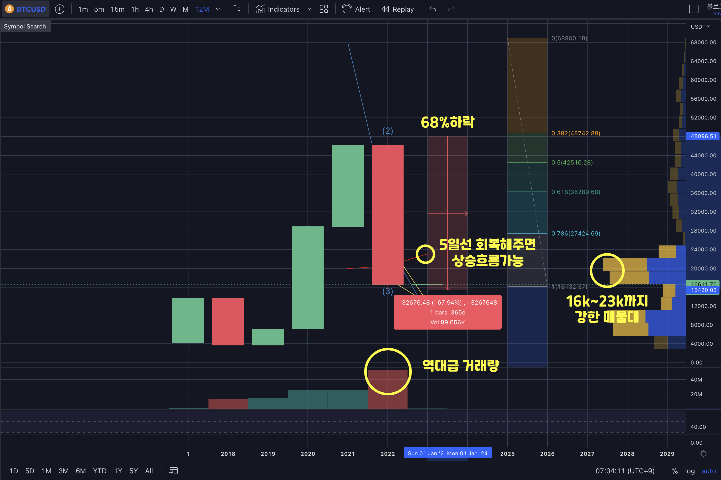 - 이것을 회복하려면 꽤나 시간이 걸리겠지만 여기서 잘 버텨주면 더 큰 상승장이 올수 있습니다.
