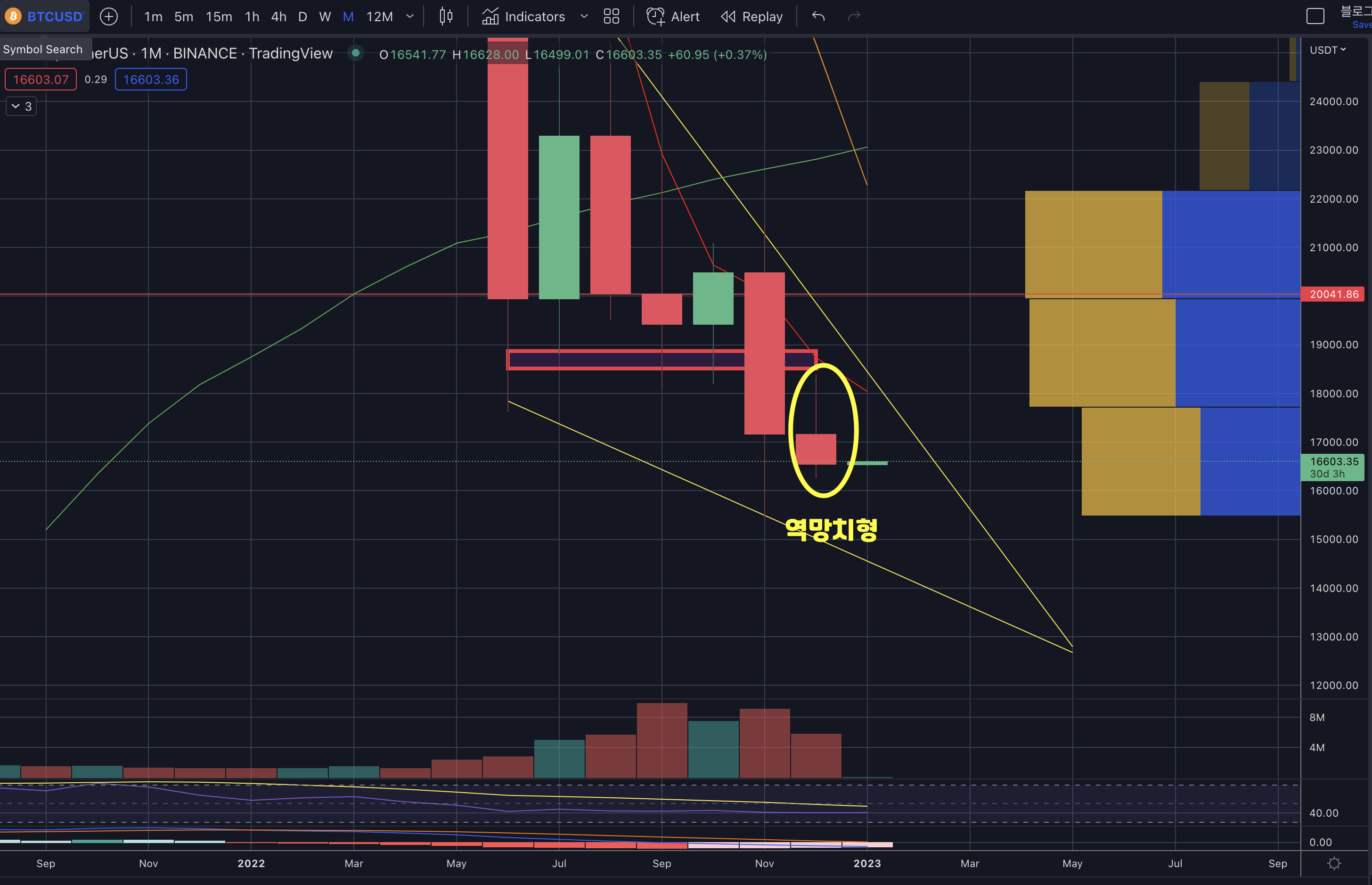 - 22년봉은 비트코인 역사상 최고의 거래량으로 마감이 되었습니다.