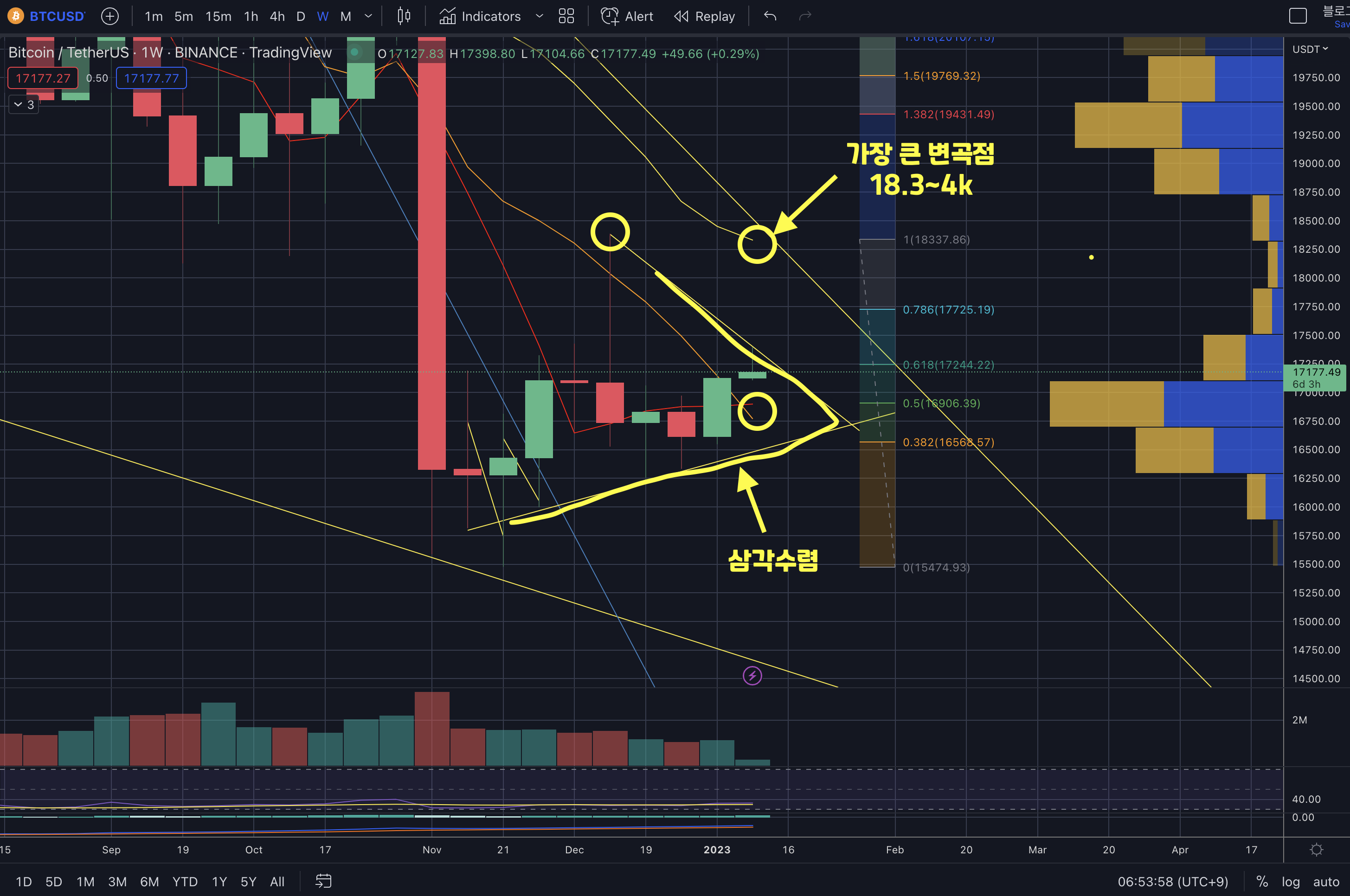 - 그러나 아직 FTX사태에 떨어진 음봉의 반도 회복하지 못했기 때문에 반드시 18.3~4k를 뚫어야 이제 좋은 모습을 보인다고 계속 말씀드립니다~