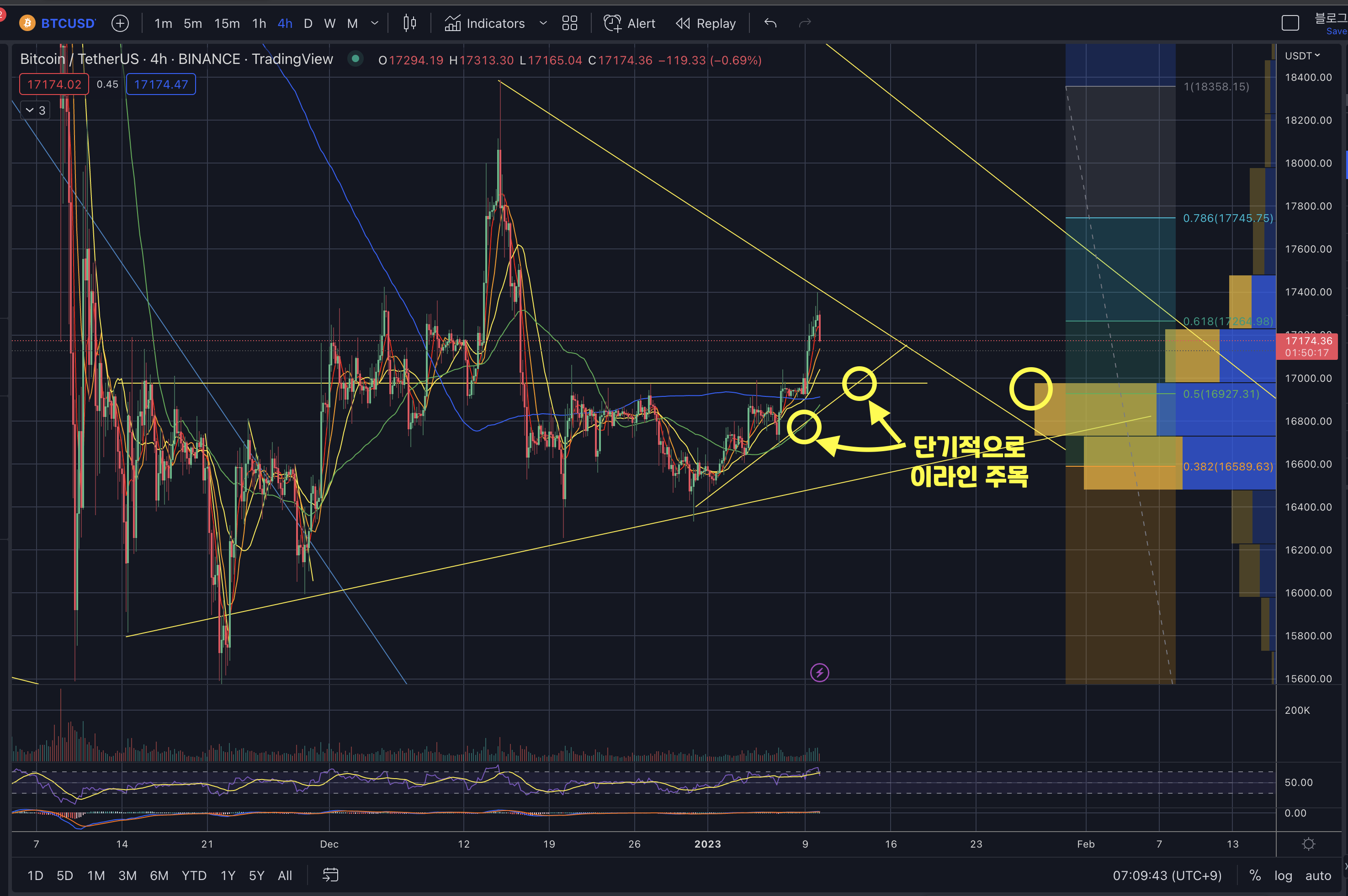 - 단기 저항대인 17.1~2k를 뚫어주면서 17.4k까지 갔다가 다시 하락하고 있습니다.
