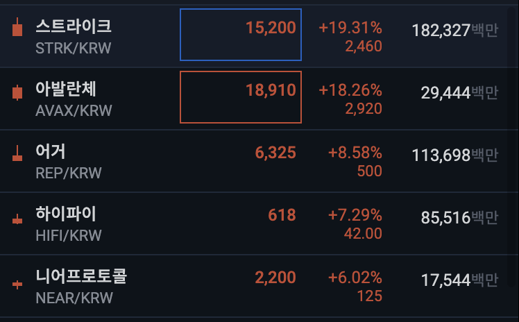 업비트 전일 대비 상위 종목