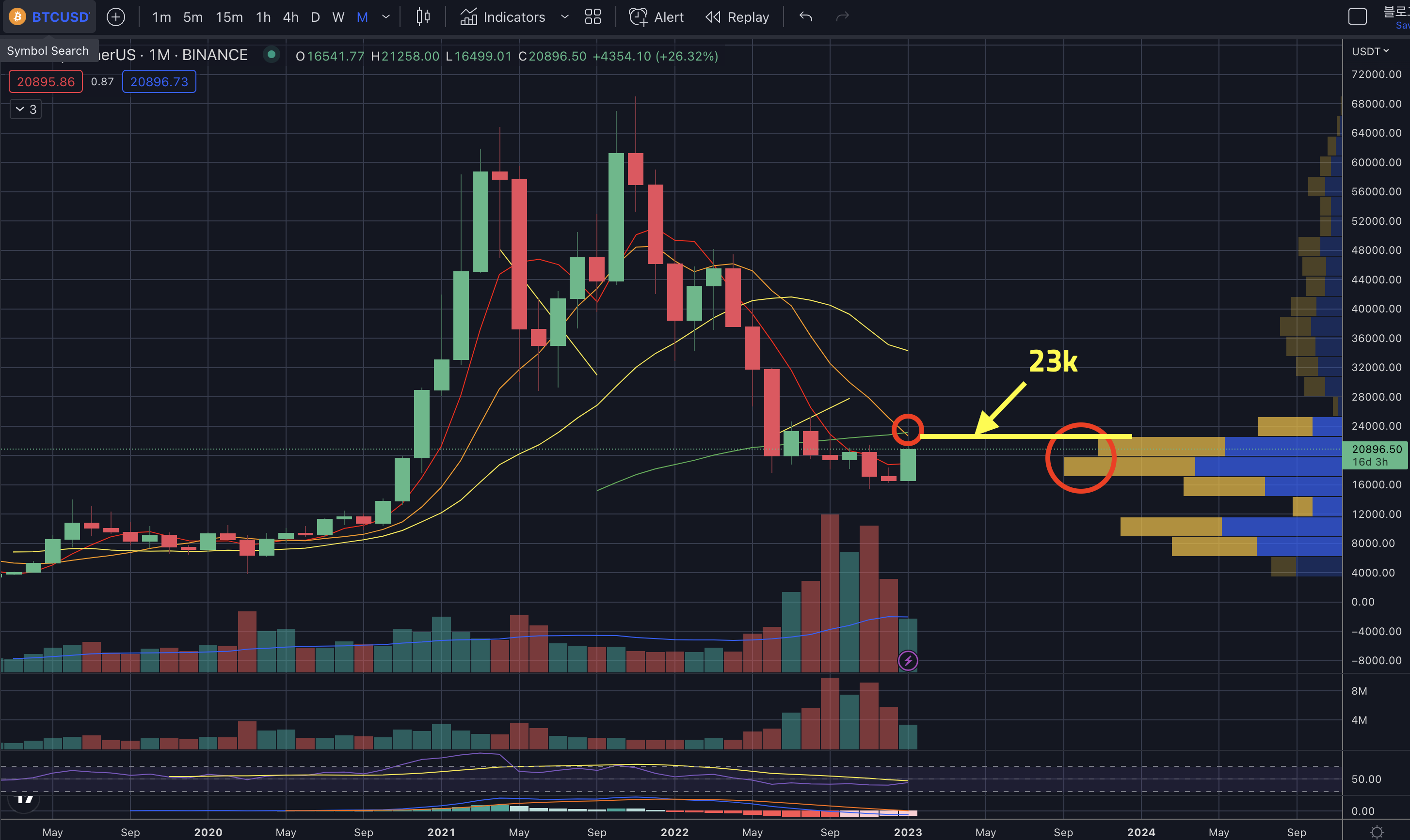 - 상승 시 저항 구간 : 21.5k -> 22.5k -> 23k -> 25k